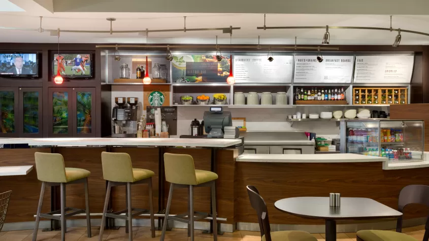 Our newly renovated Courtyard by Marriott Fort Myers Cape Coral boasts newly renovated guest rooms and public spaces ideally situated near pristine Gulf Coast beaches and downtown Fort Myers. Convenient for travelers, our hotel is near the Fort Myers airport, Southwest Florida International (RSW). Explore popular destinations like CenturyLink Sports Complex, Harborside Event Center and Edison Ford Winter Estates. Stay in our Fort Myers hotel near JetBlue Park, home of Boston Red Sox spring training. Start your day satisfied with a tasty breakfast sandwich & specialty Starbucks® beverage at The Bistro, then return for an evening meal paired with bar service. Following an action-packed day, retreat to relaxation in our brand new guest rooms & suites with free high-speed Wi-Fi, modern TVs and signature Marriott bedding. Work up a sweat with a brisk workout in our 24-hour fitness center, then cool down while making a splash in our outdoor pool. Enjoy all the Courtyard Fort Myers Cape Coral hotel has to offer.