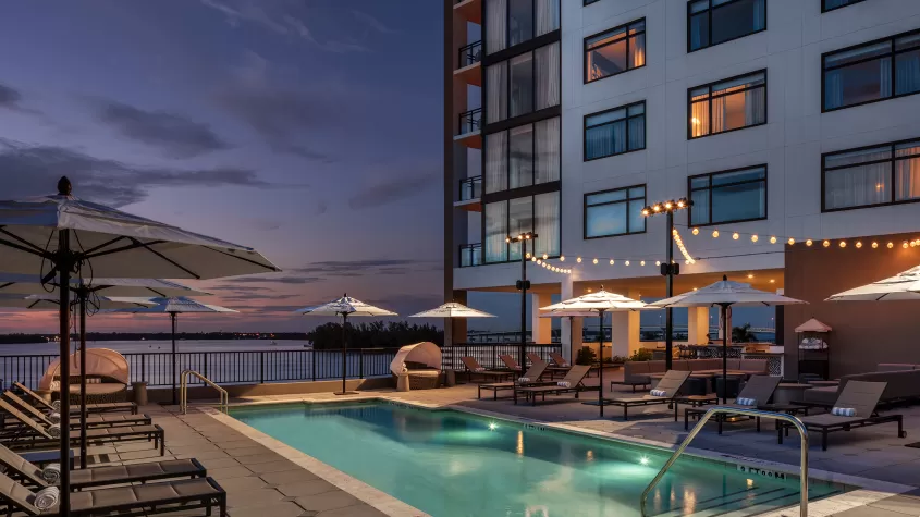 Luminary Hotel & Co., Autograph Collection in downtown Fort Myers boasts 243 guest rooms & suites, with connectivity to the 37,000-sq.-ft. Caloosa Sound Convention Center. Positioned in a lively river district, Luminary Hotel & Co. features a rooftop bar, two restaurants, retail and ample meeting space. The Workshop, a state-of-the-art culinary theatre, hosts culinary classes and encourages collaboration and innovation.