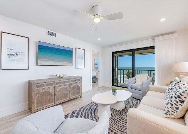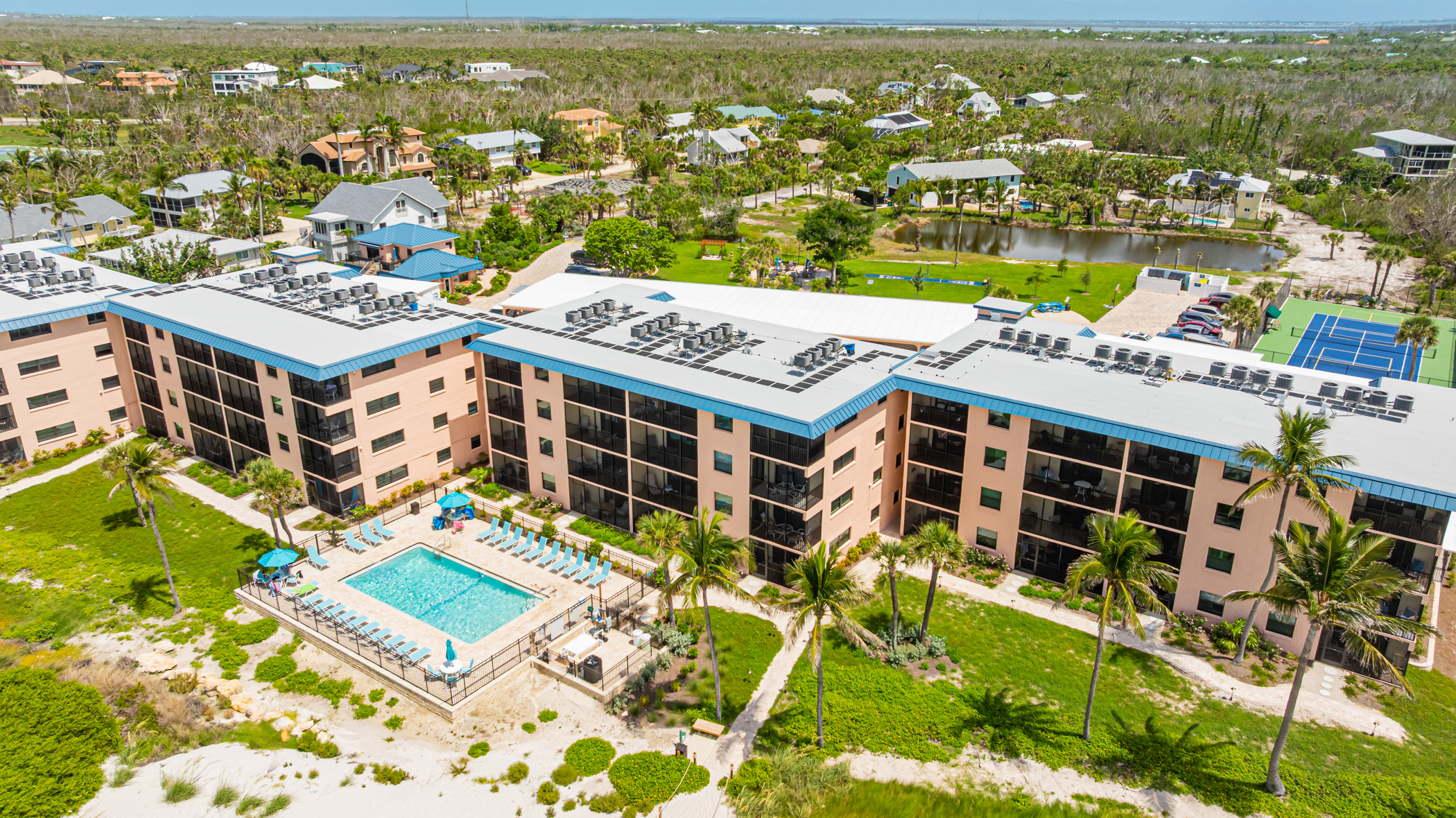 Ocean's Reach is unique for offering ALL BEACHFRONT accommodations, where incredible views of the Gulf of Mexico start right from your very own living room.  Beautiful 1- and 2-bedroom condos feature private lanais, fully-appointed kitchens and all the comforts of home, including in-room washer and dryer. Non smoking. Family friendly. Complex is exquisitely landscaped, including "Andy's Grove," a lovely outdoor dining area with five gas grills.  Heated gulfside pool.  Tennis, pickleball, basketball, shuffleboard and corn toss.  Shelling station and butterfly garden.  Covered carports.  Complimentary high-speed internet.  Free replenishment supplies.  First "Green Lodge" on Sanibel Island.  Secluded location, convenient to everything but off the beaten path.  Best of all, "just 19 steps" to your very own world-class beach, featuring amazing shelling, remarkable wildlife and spectacular sunsets!