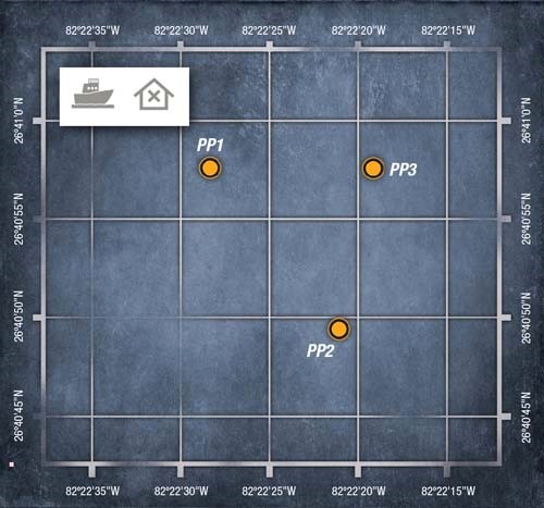 Individual Plots: PP1: 26-40.958N, 82-22.471W Barge, Crane PP2: 26-40.824N, 82-22.351W Ship PP3: 26-40.958N, 82-22.320W Power Poles |