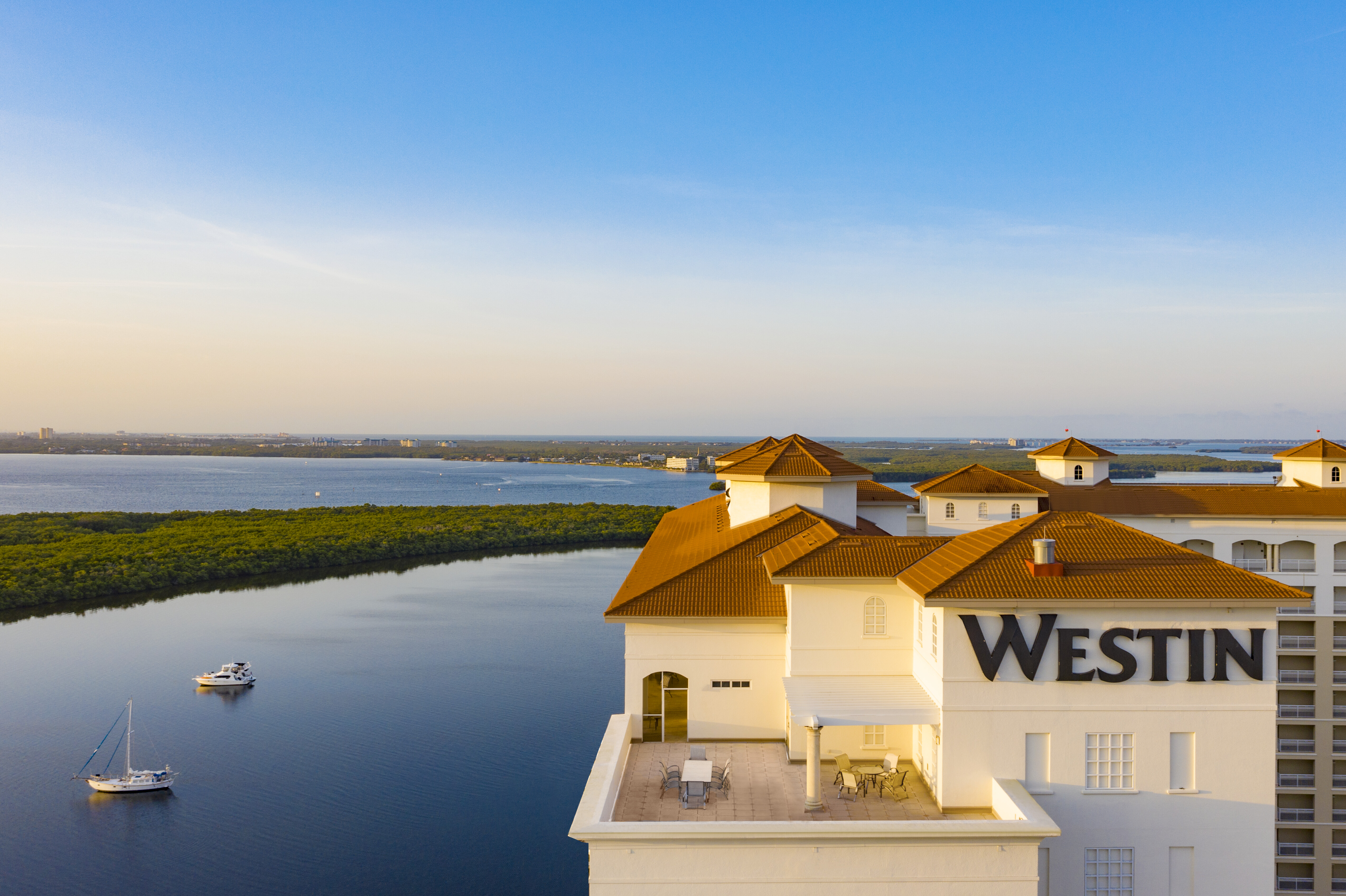 All 308 guest accommodations feature a private screened in balcony looking out to sweeping views of the Gulf of Mexico, Callosahatchee River and Tarpon Point Marina. In-room amenities include Westin's Heavenly Bed and Heavenly Bath, high-speed internet access, flat-screen TV with on-demand movies, safe, dual-line speakerphone and coffee maker with complimentary Starbucks coffee and Tazo tea. Westin also offers guests a 100% smoke-free environment.